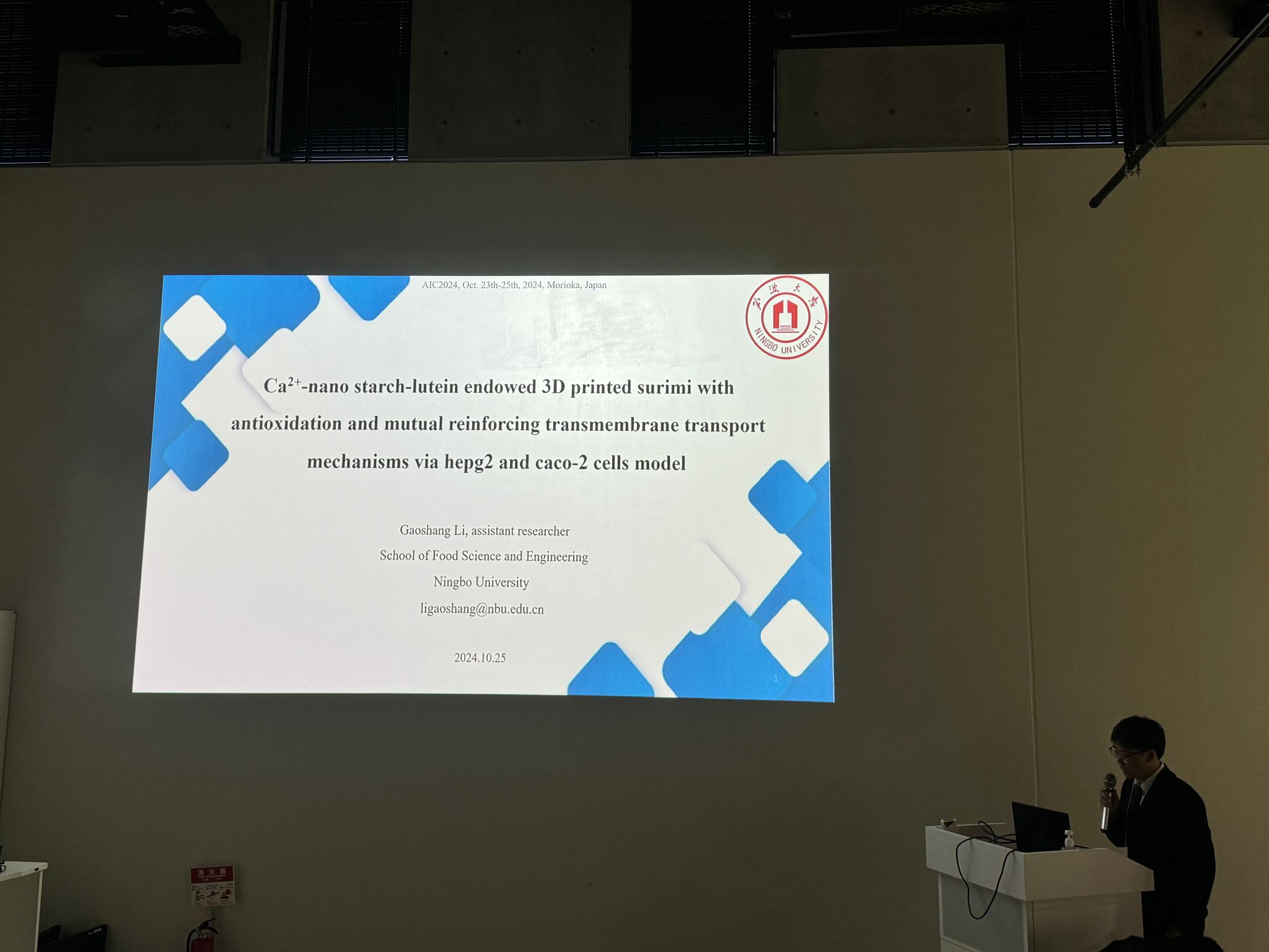 贾茹副教授、魏华茂副研究员及李高尚博士携2位研究生蒋秀艺、刘襄瑶赴日参加“International Symposium on Precision Quality Control of Aquatic and Agro Foods: Innovations in Green Process (AIC2024)”,此次会议由日本农业创新中心(AIC)及岩手大学主办,汇聚了来自中国、日本、韩国、美国及欧洲等10个国家的120余名科研工作者,介绍和讨论了有关食品系统质量控制和可持续性发展的最新科学进步和技术成果。