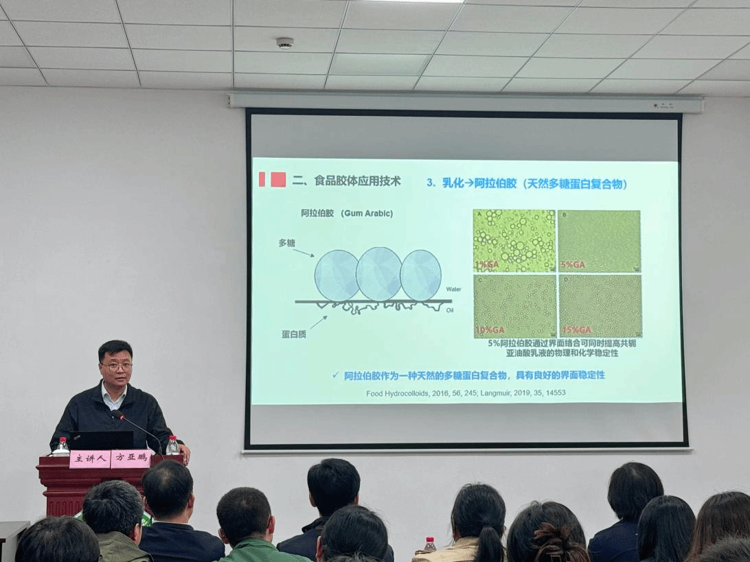 方亚鹏教授的讲座深入浅出,不仅加深了在场师生对食品胶体的认知,而且其成果转化的事例也启发了在场师生。