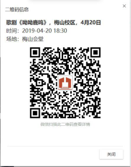 今年全国两会期间,习近平总书记看望参加全国政协十三届二次会议的文化艺术界、社会科学界委员,并强调:“文艺是时代前进的号角,最能代表一个时代的风貌,最能吸引一个时代的风气。”《呦呦鹿鸣》作为优秀的文艺作品其中蕴含的精神值得每一位同学学习。为深入学习习总书记两会期间有关优秀文艺作品引领风尚精神,学院联合梅山校区管委会为大家预留了部分4月20及21号演出的座位。具体场次为:(1)4月20日(周六),18:30梅山会堂;(2)4月21日(周日)18:30梅山会堂;扫描二维码即可线上选座。请各党支部组织动员党员及入党积极分子,积极观看演出。党员参与观看计入学时,入党积极分子参与可以以观看《呦呦鹿鸣》心得体会为近期思想汇报主题。